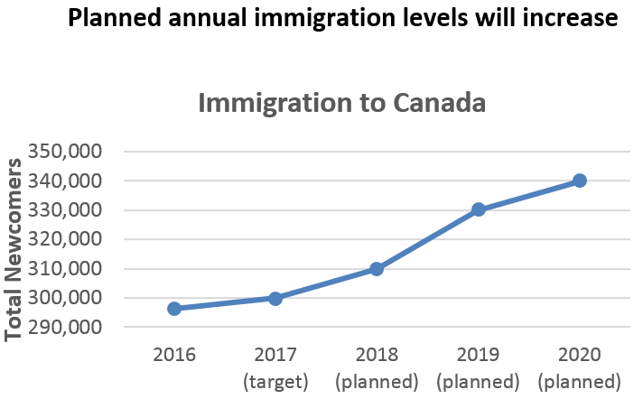 در سال ۲۰۱۷ دولت کانادا یک برنامه تاریخی چند ساله را برای رشد میزان مهاجرت سالانه به کشور به میزان ۳۴۰ هزار نفر در سال ۲۰۲۰، با ۶۰ درصد میزان رشد در کلاس اقتصادی معرفی کرده است. بالا رفتن سطح مهاجرت به خصوص در حوزه اقتصادی می تواند کشور کانادا را در حفظ نیروی کار، نگه داشتن رشد رو به بالای اقتصادی و ارائه نوآوری در حوزه های مختلف یاری نماید.